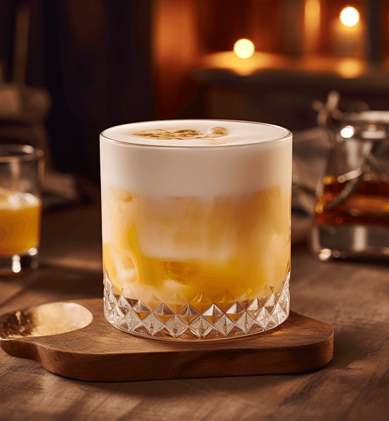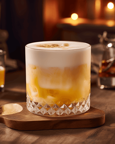 Ron Falernum, zumo de lima y clara de huevo. Equilibrio entre dulzura y acidez con textura suave.